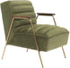 Go mod in your living room, den or other space with this Woodford velvet accent chair. This lovely addition to your home features soft olive velvet upholstery for a lavish look in any room. The back and seat are channel tufted for added resilience and lasting beauty. The metal frame adds enduring quality to this chair, and the brushed gold metal legs and wood arms lend it a definitive contemporary vibe.