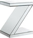 Create an instant focal point in your living room with this Zee end table from Meridian Furniture. This handsome table has a unique 'Z' design to catch the eye and garner compliments. The shape gives it a sculptural look, while the mirrored accents add dimension and airiness to your room. Use it on its own or alongside other items in the collection.
