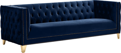 MeridianOriginal price $1,791.73Current price $1,378.25| /Upholstered in soft navy velvet, this Michelle sofa is sumptuously glamorous. Designed for upscale living, this chair features rich gold nail head ...