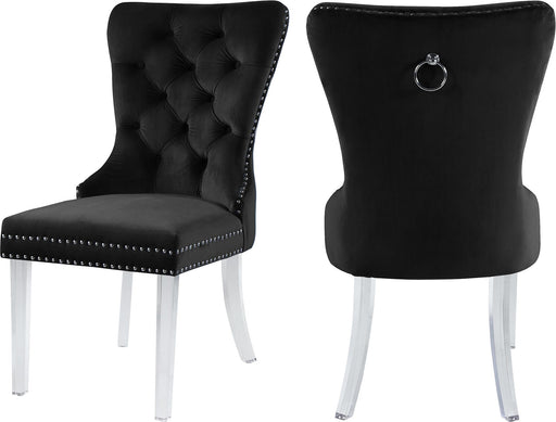 MeridianOriginal price $372.78Current price $286.75| /Dine in luxurious style with the Miley black velvet dining chair. Featuring a curved high back, plush cushioned seat and deep tufted black velvet u...
