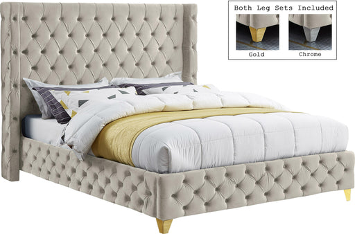 MeridianOriginal price $1,058.20Current price $814.00| /Savan Cream Velvet Queen Bed - Rich Cream Velvet - Deep Button Tufting - Gold and Chrome Legs Included with Each Bed - Full Slats (No Box Sprin...