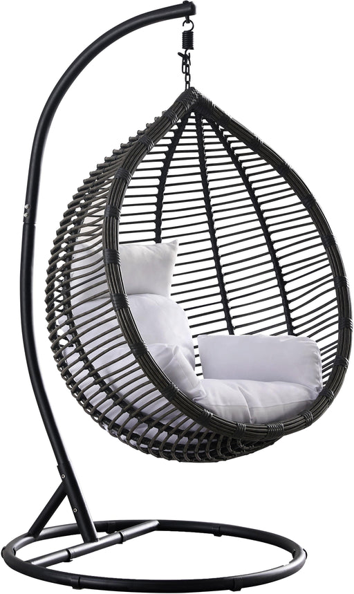 MeridianOriginal price $1,262.63Current price $971.25| /Tarzan Dark Grey Outdoor Patio Swing Chair - Dark Grey Rattan Swing - Matte Black Metal Base - White Resilient Waterproof Fabric - Indoor/Outdo...