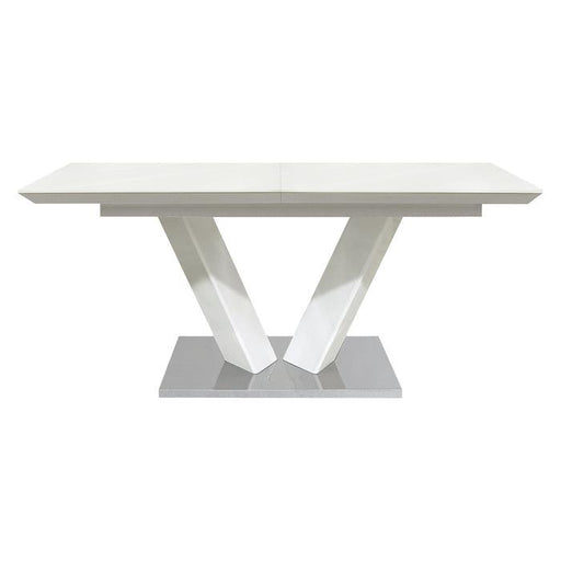 Homelegance (Homerica East)Original price $1,178.11Current price $906.24| /Yannis Collection by Homelegance Ultra-bright high gloss finish Manmade wood table top V-shaped support with chrome base plate Self storing butter...