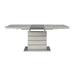 Glissand Collection by Homelegance Ultra Bright High Gloss White and Gray Taupe finish Made of manmade wood and wood Self storing extension leaf A...