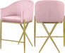 Mosey up to the home bar and find comfortable seating awaits when you have this Xavier counter stool to turn to. This stool features a rich pink velvet upholstered barrel-style seat and back cushion and rests on gold metal legs with a metal frame for durability. This counter-height stool is just the thing to bring your modern counter or home bar setup into contemporary style.
