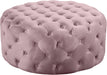 Rest weary legs at day's end atop the welcoming comfort of this Addison pink velvet ottoman. This Hollywood-inspired ottoman features deep button tufting from top to bottom for a luxe look and is covered in velvety upholstery for added glam. The vibrant pink color makes a bold statement in your space and adds a pop of cheery color to your room. This substantially sized ottoman also doubles as an extra seat and is padded thickly for supreme comfort.