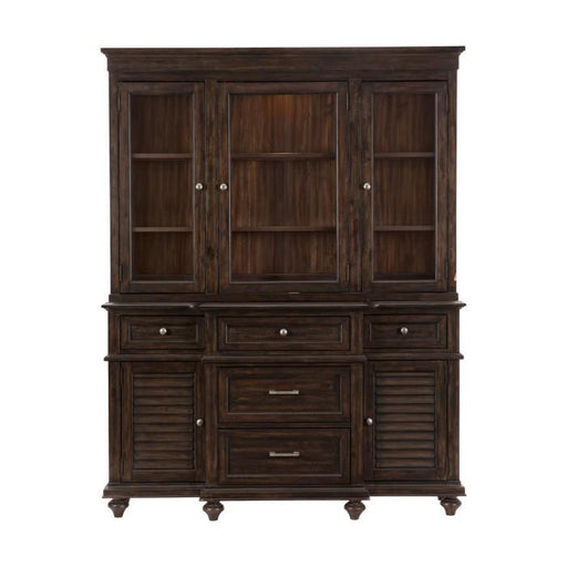 Cardano Collection by Homelegance Charcoal finish Made of acacia veneer and wood Hutch with glass doors and 2 fixed shelves, LED lighting 5 doveta...
